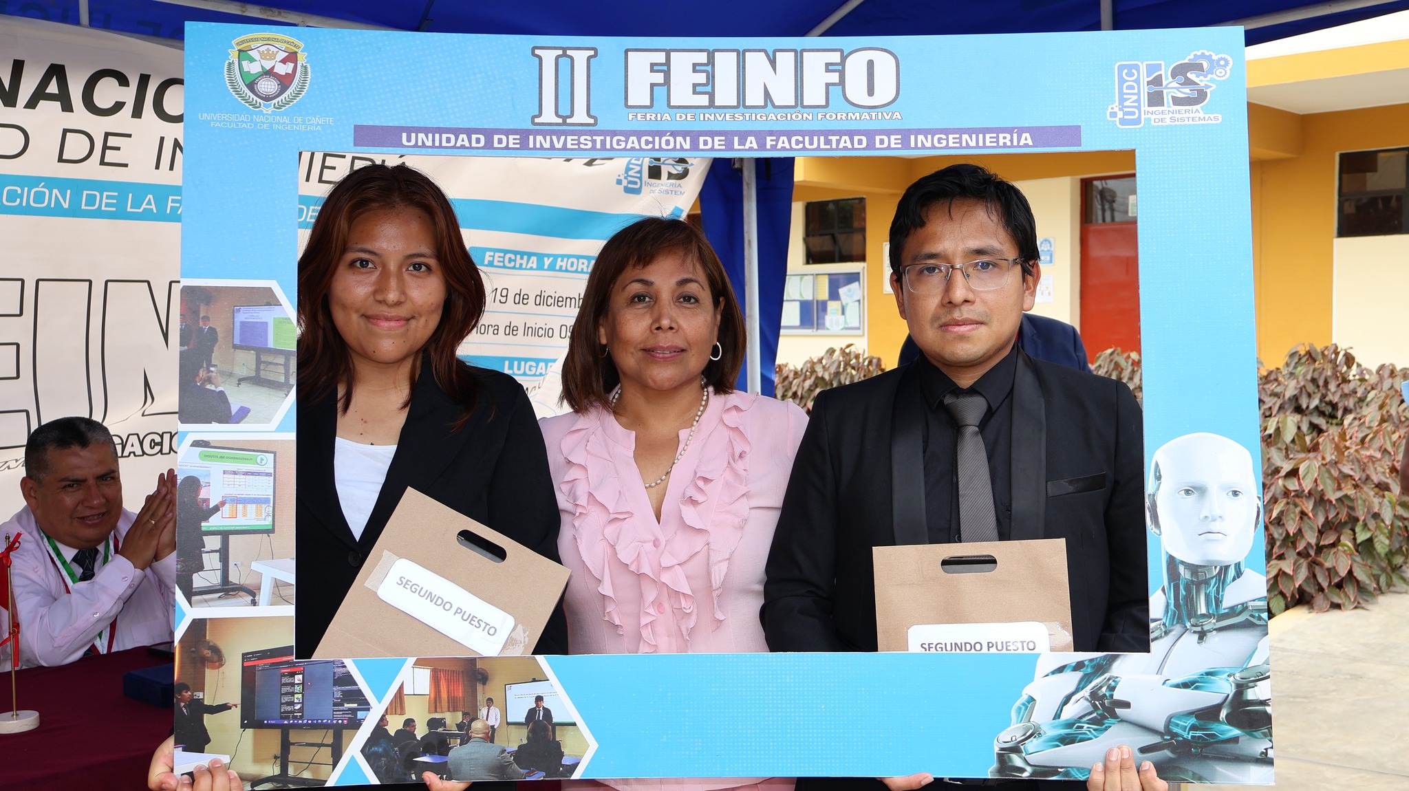 El estudiante sustenta y defiende su informe final de tesis ante el jurado evaluador en una ceremonia pública.